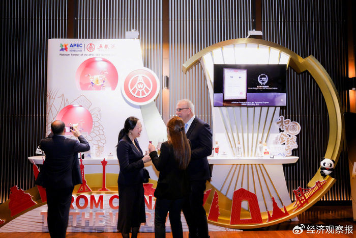 峰会期间,多位APEC经济体工商领袖到访五粮液主题展台。“和合共生、美美与共”的理念成为跨越国界的共识,让现场嘉宾直观感受中国品牌连接世界的诚意:“五粮液不仅展现了东方酿造的技艺高度,更让我们看到中国品牌在可持续发展中的创新实践。”