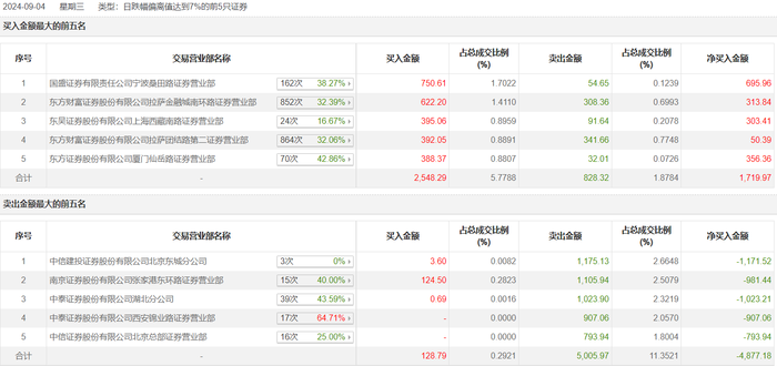 具体来看,知名游资现身龙虎榜,中信建投证券北京东城分公司、南京证券张家港东环路证券营业部分别卖出1175.13万元、1105.94万元;宁波桑田路(国盛证券宁波桑田路证券营业部)、东方财富证券拉萨金融城南环路证券营业部分别买入750.61万元、622.20万元。