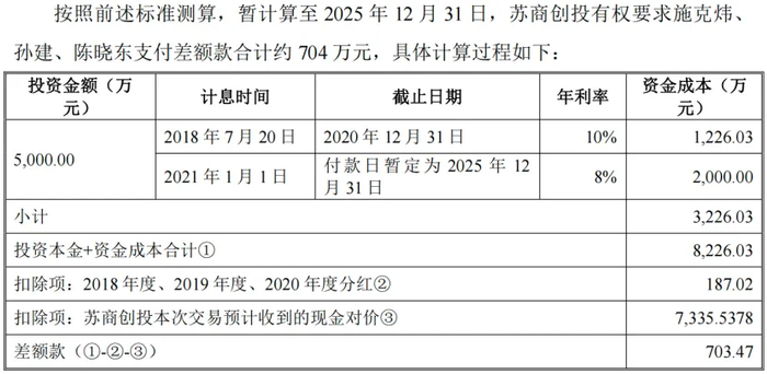 根据重组报告书的披露,对于前述对赌条款,各方已明确解除由金张科技及下属子公司承担回购责任的条款并自始无效。但与安庆同安和太湖海源不同的是,苏商创投在本次交易完成后,仍要求施克炜等金张科技创始股东向其履行回购义务,即扣除历次分红款和国风新材支付的现金后,还需支付704万差额款。