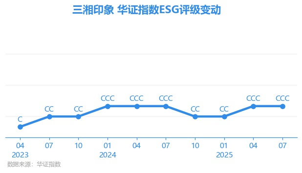 日前,华证指数公布了新一期(2025年7月31日)的ESG评级结果,三湘印象(000863.SZ)获得CCC评级(华证指数评级为C起至AAA九档,C为最低档,AAA为其最高一级评级/AA为其第二档),上一期(2025年4月30日)ESG评级为CCC。本期ESG评级在102家房地产管理和开发行业A股上市公司中排名第89(上一期排名第93)。