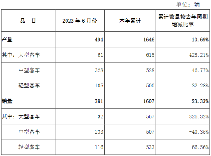7月6日公告,上半年汽车销量1607辆,同比增长23.33%。