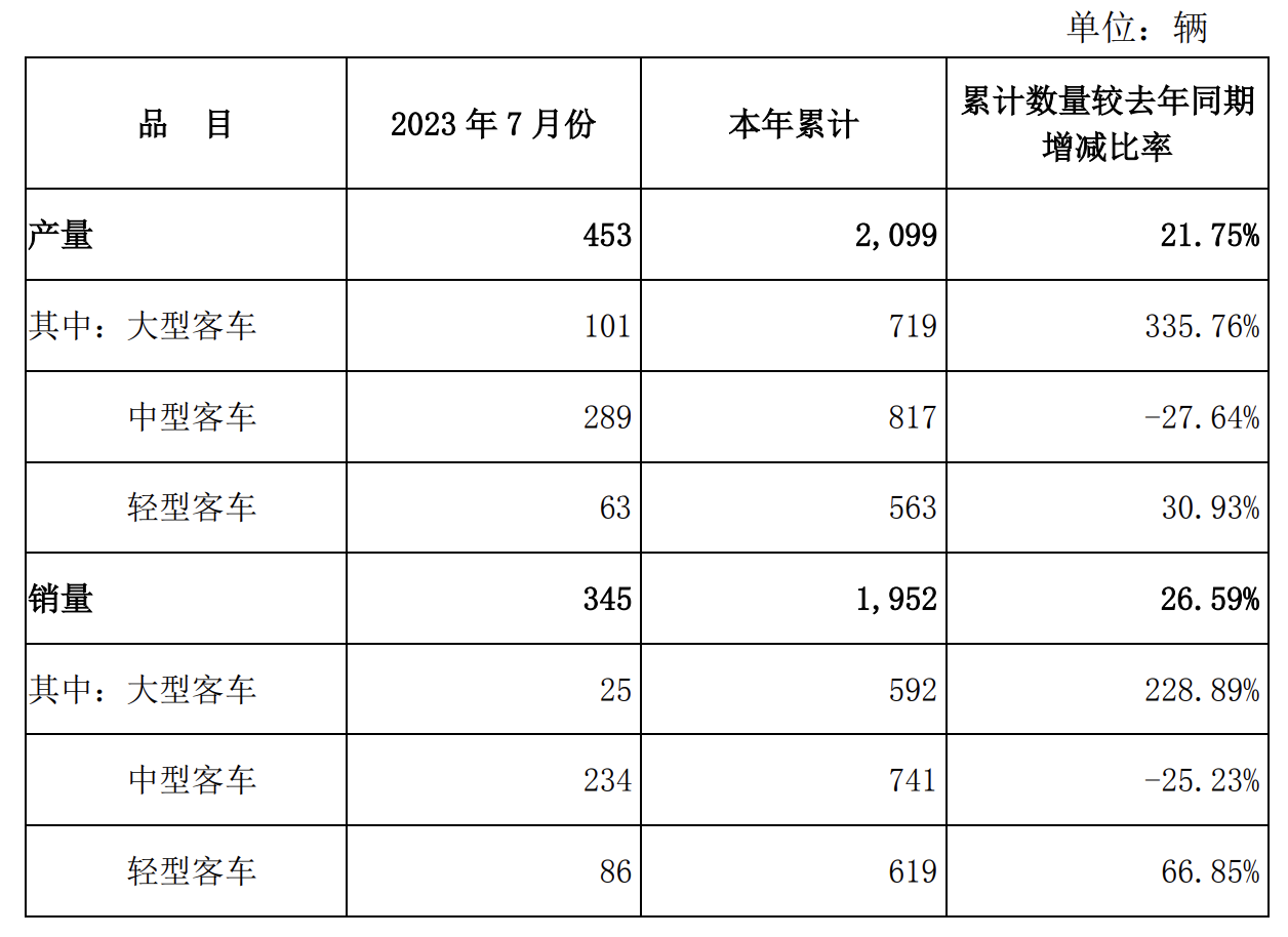 8月8日公告,7月销量合计345辆。本年累计销量1952辆,同比增长26.59%。