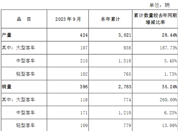 安凯客车:前9月汽车销量合计2763辆,同比上涨35.24%