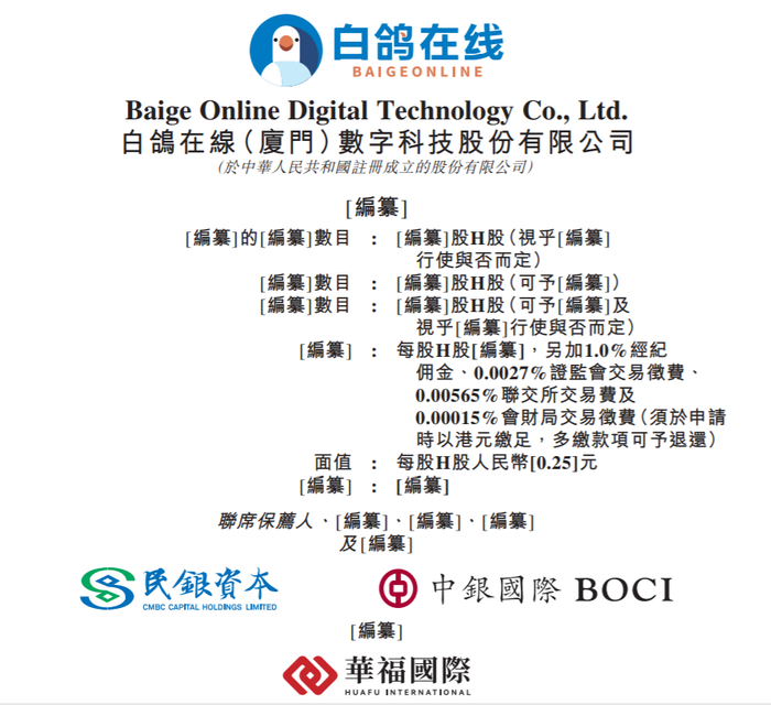 瑞财经 王敏12月24日,据港交所官网,白鸽在线数字科技股份有限公司(以下简称“白鸽在线”)通过上市聆讯,准备在港交所上市,联席保荐人为民银资本、中银国际。