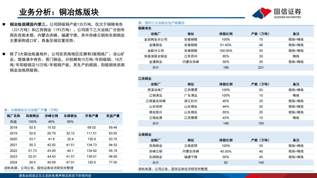 国信金属 | 云南铜业深度:铜冶炼盈利稳健,大股东优质资产注入