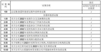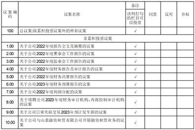 2022年度股东大会议案编码表