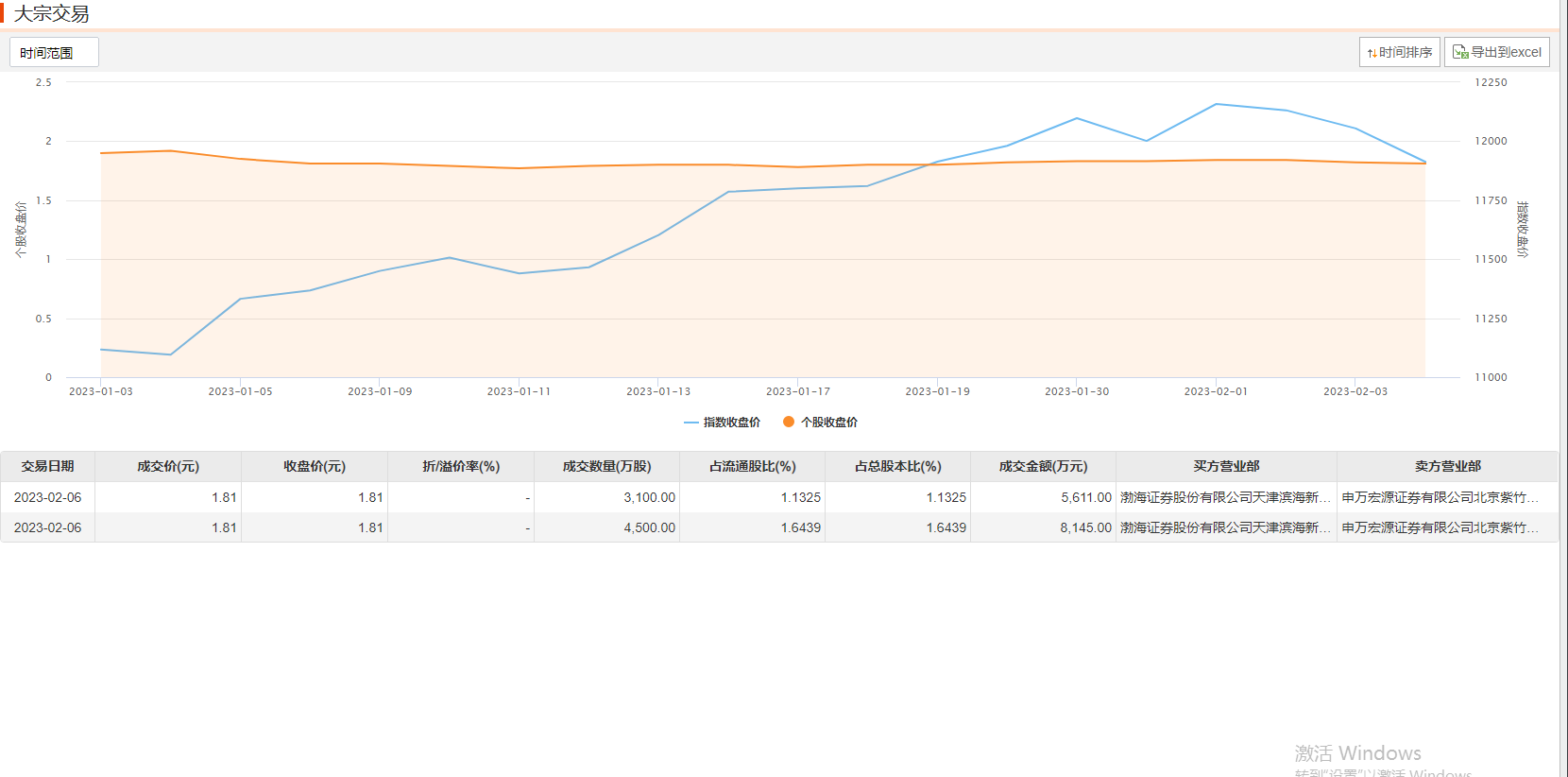 2月6日大宗交易成交7600万股,成交额1.38亿元,占当日总成交额的76.51%,成交价1.81元,较市场收盘价1.81元持平。