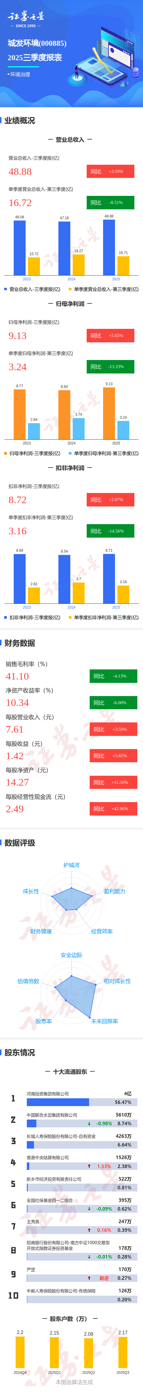 图解城发环境三季报:第三季度单季净利润同比下降13.34%