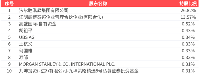 公司股东户数为3.36万户,前十大股东持股数量为1.82亿股,占总股本比例为43.29%,前十大股东持股情况如下: