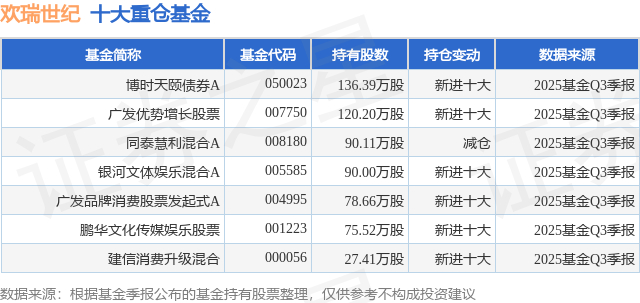 根据2025基金Q3季报公募基金重仓股数据,重仓该股的公募基金共7家,其中持有数量最多的公募基金为博时基金的博时天颐债券A。博时天颐债券A目前规模为3.49亿元,最新净值1.7883(1月7日),较上一交易日上涨0.77%,近一年上涨22.28%。该公募基金现任基金经理为李重阳 罗霄。罗霄在任的基金产品包括:博时稳健回报债券(LOF)C,管理时间为2022年9月30日至今,期间收益率为12.4%;博时稳定价值债券A,管理时间为2023年7月28日至今,期间收益率为12.43%;博时稳健增利债券A,管理时间为2023年10月20日至今,期间收益率为16.28%;博时恒进持有期混合A,管理时间为2024年2月2日至今,期间收益率为12.77%。李重阳在任的基金产品包括:博时新策略灵活配置混合A,管理时间为2023年10月17日至今,期间收益率为-2.97%。