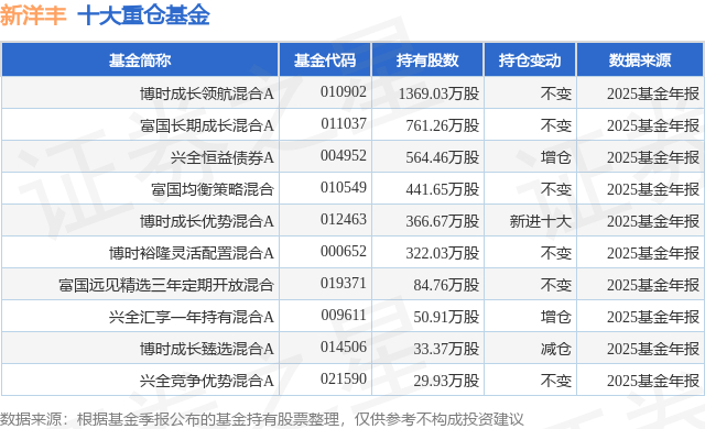 重仓新洋丰的前十大公募基金请见下表:
