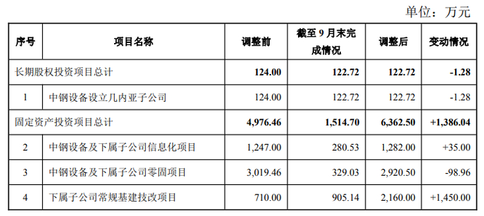 中钢国际(000928)发布公告,公司对2025年度投资计划进行了中期调整。根据年度投资计划执行进展情况,董事会于2025年10月17日审议通过了该项调整,无需提交股东大会审议。具体调整情况显示如下: