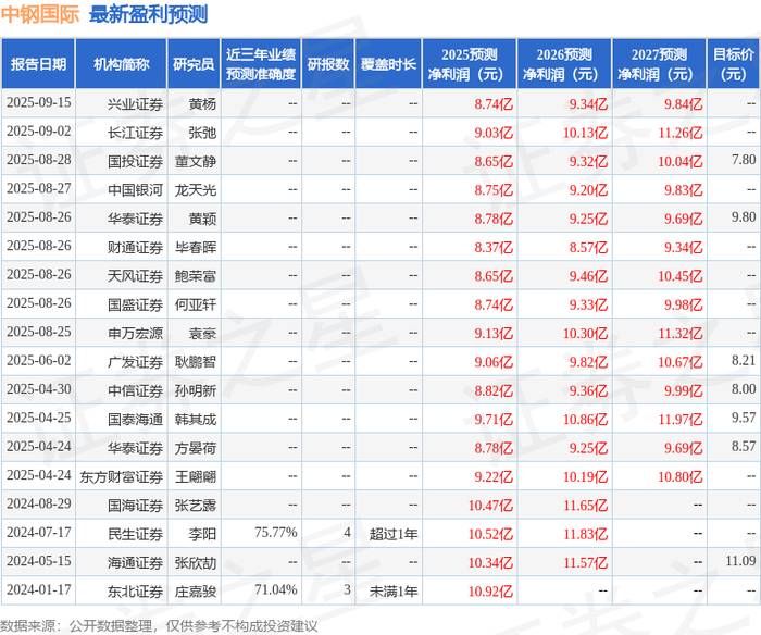 证券之星消息,2025年10月30日中钢国际(000928)发布公告称公司于2025年10月30日召开分析师会议,广发证券、东兴基金、长江证券(上海)资产管理公司、创金合信基金、海富通基金、上海勤辰私募基金、圆信永丰基金、中颖投资参与。