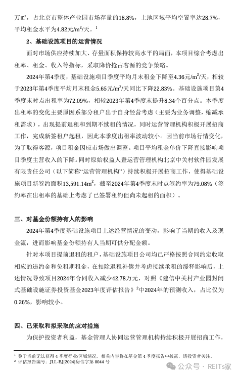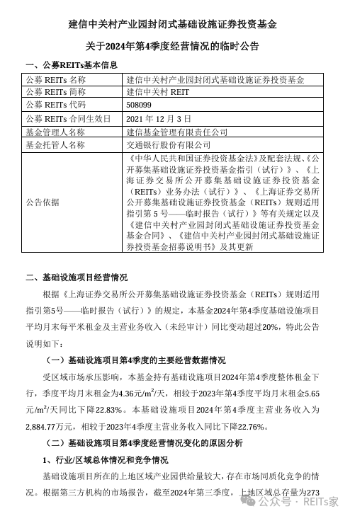 中关村产业园REIT以价换量的经营策略导致第四季度收入同比下跌22.76%