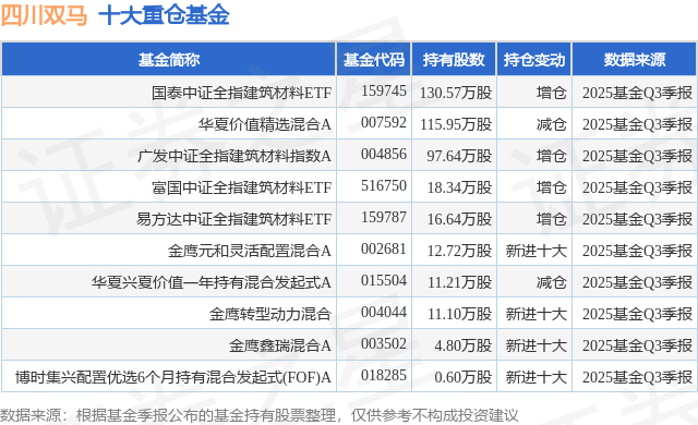 根据2025基金Q3季报公募基金重仓股数据,重仓该股的公募基金共10家,其中持有数量最多的公募基金为国泰基金的国泰中证全指建筑材料ETF。国泰中证全指建筑材料ETF目前规模为11.02亿元,最新净值0.6671(1月6日),较上一交易日上涨1.14%,近一年上涨17.95%。该公募基金现任基金经理为黄岳。黄岳在任的基金产品包括:国泰中证医疗ETF,管理时间为2021年2月5日至今,期间收益率为-58.06%;国泰中证生物医药ETF,管理时间为2021年2月5日至今,期间收益率为-47.23%;国泰中证科创创业50ETF,管理时间为2021年6月29日至今,期间收益率为3.28%。