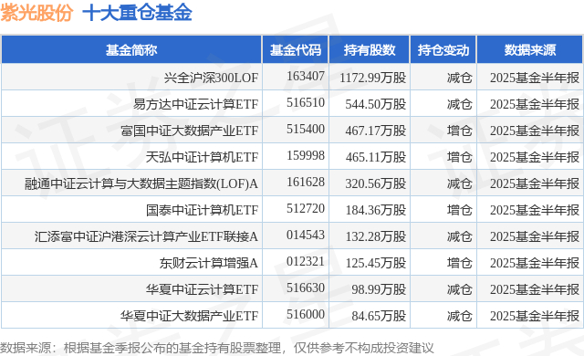 重仓紫光股份的前十大公募基金请见下表: