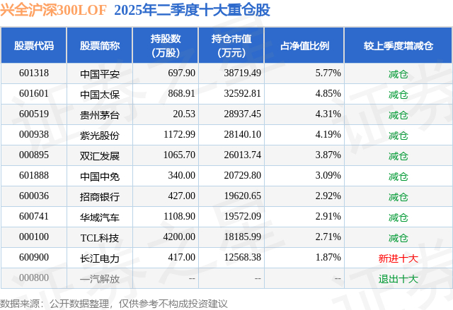 兴全沪深300LOF的前十大重仓股如下: