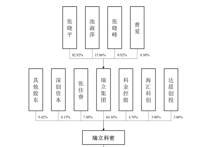 上市前,,张晓平、池淑萍通过瑞立集团控制公司64.16%的股份,张佳睿直接持有发行人7.40%的股份,张晓平、池淑萍、张佳睿合计控制公司71.56%的股份,为公司实际控制人。
