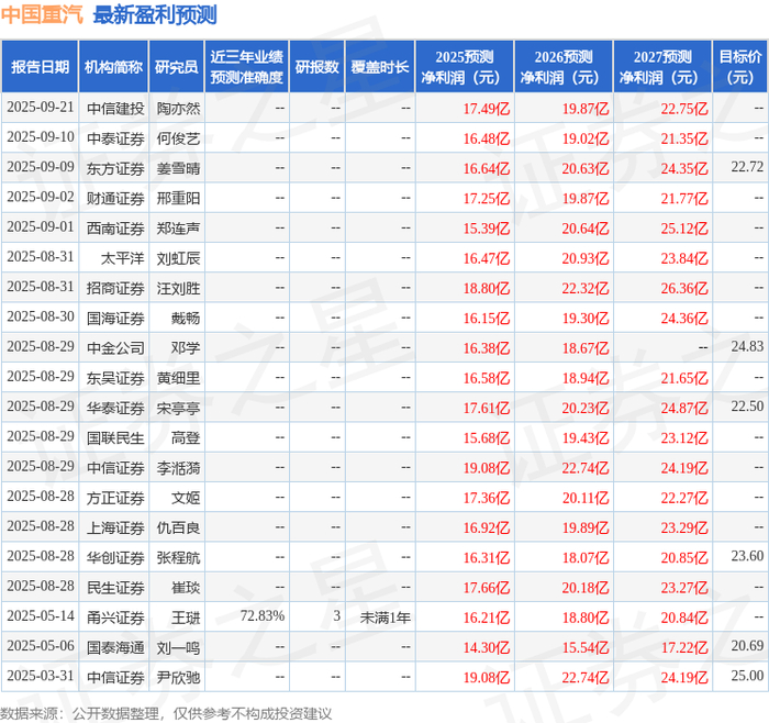 民生证券股份有限公司崔琰,杜丰帆近期对中国重汽进行研究并发布了研究报告《系列点评六:25Q3业绩符合预期 政策驱动需求增长》,给予中国重汽买入评级。