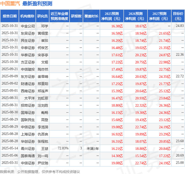 西南证券股份有限公司郑连声,郭瑞晴近期对中国重汽进行研究并发布了研究报告《2025年三季报点评:Q3营收/利润快速增长,出口优势持续巩固》,给予中国重汽买入评级。