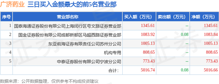10月22日广济药业(000952)龙虎榜数据:机构净卖出3009.18万元(3日)