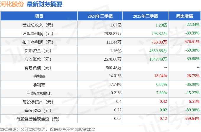 河化股份(000953)2025年三季报简析:净利润同比下降89.99%