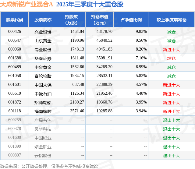 1月6日锡业股份涨10.01%,大成新锐产业混合A基金重仓该股