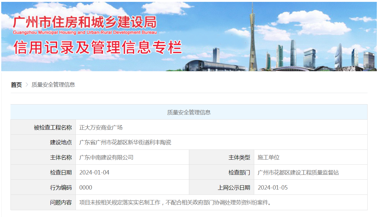 广东中南建设有限公司不配合相关政府部门协调处理劳资纠纷案