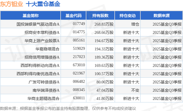 重仓东方钽业的前十大公募基金请见下表: