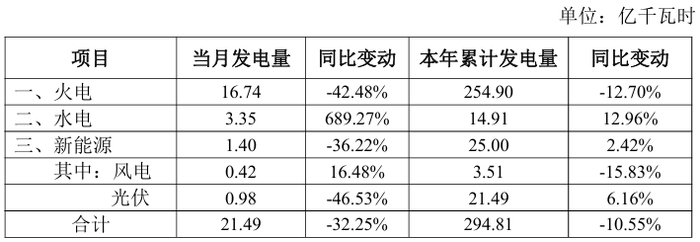 长源电力10月发电量下滑超三成,前十月累计发电量降10.55%