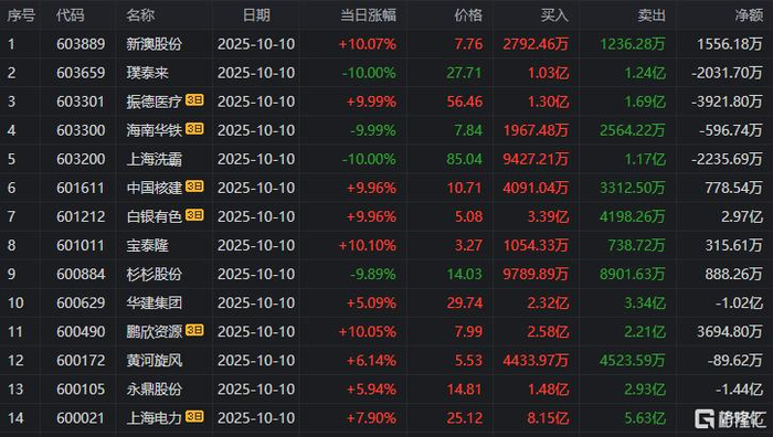 龙虎榜 | 欢乐海岸2.7亿狂扫安泰科技,中山东路、成都系联手爆买新莱应材