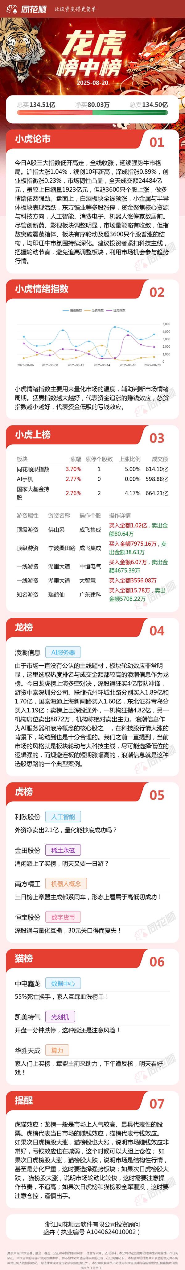 龙虎榜中榜|浪潮信息涨停机构狂抛4.8亿,华胜天成下午遭资金反核!