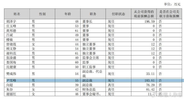 财报显示,在过去的2024年里,众泰汽车董事、监事、高级管理人员在公司领取的年度报酬的总额为954.91万元,独立董事在公司领取的津贴总额为36.00万元。其中,董事长胡泽宇从公司获得的税前报酬总额为196.59万元;副总裁尹雪峰为183.61万元,两人年薪占公司所有董监高工资近四成。