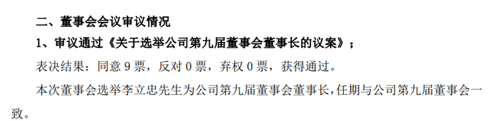 据众泰汽车第九届董事会第一次会议决议公告,李立忠当选为公司第九届董事会董事长,任期与本届董事会一致。