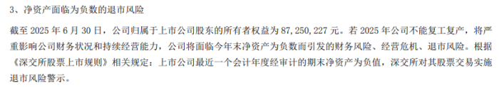 截至今年三季度末,众泰汽车的净资产为1258.28万元,同比下滑98.61%。众泰汽车在2025年半年报中表示,若2025年不能复工复产,将严重影响公司的财务状况和持续经营能力,公司将面临今年末净资产为负数而引发的财务风险、经营危机、退市风险。这也意味着,2022年5月“摘帽”仅约三年半,众泰汽车又面临退市危机。