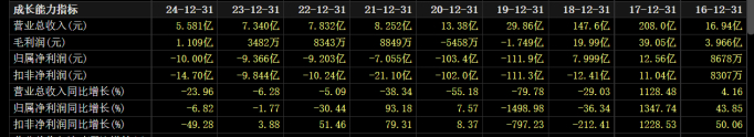 因缺乏运营资金,未能复工复产,因此众泰汽车整体业绩仍处于亏损状态。今年前三季度,公司实现营收4.19亿元,同比增长8.98%;归母净利润亏损2.23亿元,同比增长33.13%。拉长时间看,2019年至2024年,众泰汽车已连续6年归母净利润亏损,累亏超250亿元。