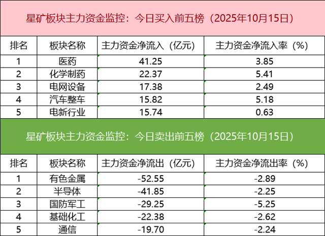 板块资金流出方面,有色金属板块主力资金净流出居首。