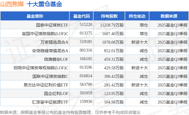 重仓山西焦煤的前十大公募基金请见下表: