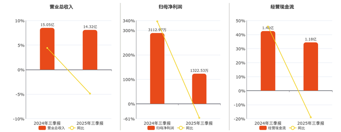 大庆华科(000985.SZ):2025年三季报净利润为1322.53万元、同比较去年同期下降57.52%