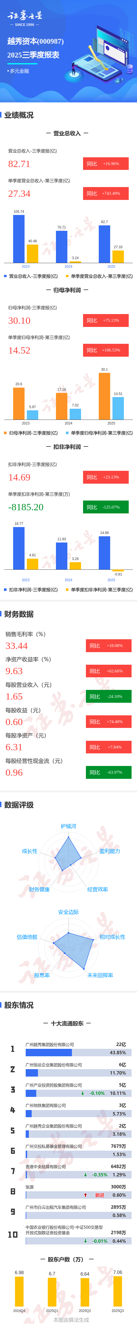 图解越秀资本三季报:第三季度单季净利润同比增长106.53%
