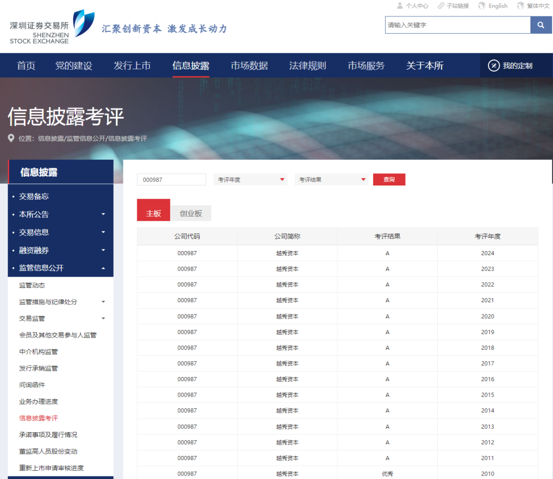 近日,深圳证券交易所(下称“深交所”)发布深市上市公司2024-2025年度信息披露评价结果,越秀资本(000987.SZ)再次荣获A级,这是公司连续15年获得该项考评最高评级。