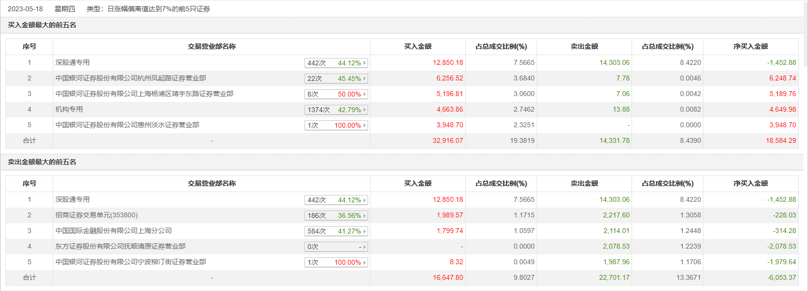 5月18日,华工科技今日涨停,龙虎榜数据显示,上榜营业部席位全天成交5.94亿元,占当日总成交金额比例为35%。其中,买入金额为3.67亿元,卖出金额为2.27亿元,合计净买入1.4亿元。