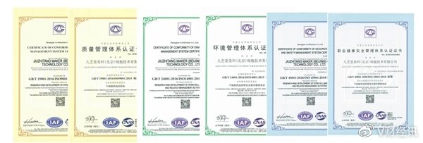 九芝堂美科全面完善的管理体系建设,是保障干细胞产品质量的重要因素。2023年2月,九芝堂美科荣获了ISO9001、ISO14001和ISO45001三体系国际认证,标志着九芝堂美科的质量管理体系,环境管理体系和职业健康安全管理体系,正式与国际标准全面接轨。