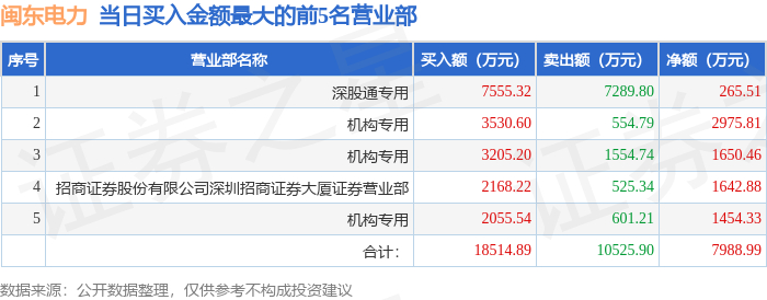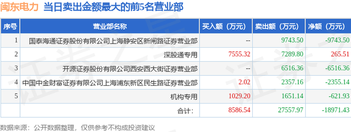 11月11日闽东电力(000993)龙虎榜数据:游资上海超短帮上榜