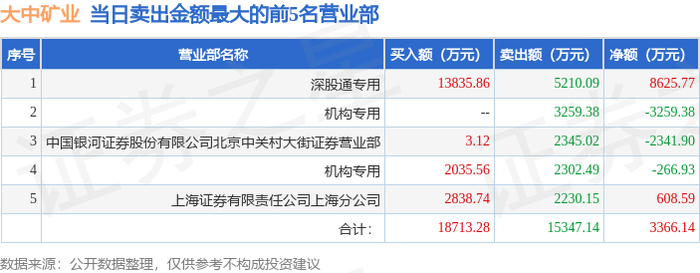 10月31日大中矿业(001203)龙虎榜数据:游资小棉袄、北京中关村上榜