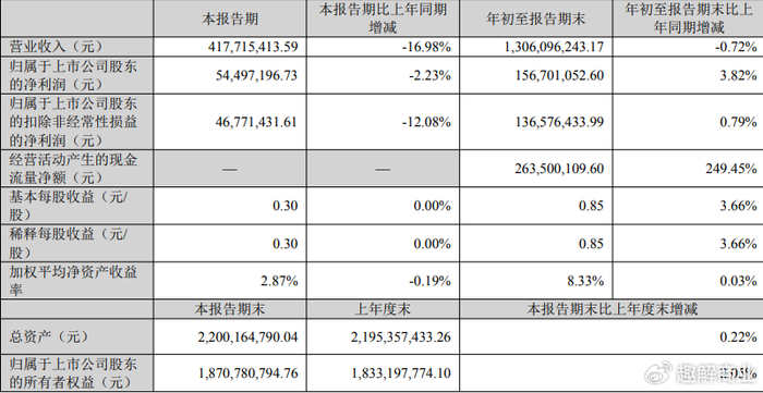 今年前三季度,依依股份营收同比下降0.72%至13.06亿元,归母净利润为1.57亿元,同比增速降至3.82%,去年同期归母净利润的增速达72.72%。