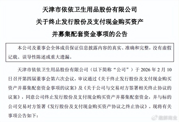 对于终止原因,公司给出的解释指向“标的公司2025年经营情况与本次交易筹划期初的预期发生了一定变化”。公告称,由于标的公司在2025年“双十一”活动中对猫砂的销售模式进行了调整,以及2025年下半年以来推广猫粮新品的前期投入,导致标的公司2025年经营情况与本次交易筹划期初的预期发生了一定变化。