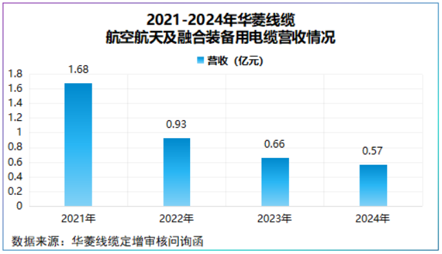 2. 高端波动:真正赚钱的“航空航天及融合装备用特种电缆”,虽然毛利率高,但生意不稳定。它完全依赖下游客户的项目进度,采购计划说变就变。这块业务的收入从2021年的1.68亿,暴跌至2024年的0.57亿,直接拖累了公司整体利润。