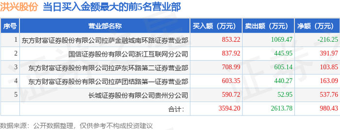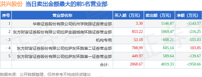 11月12日洪兴股份(001209)龙虎榜数据:机构净卖出555.03万元
