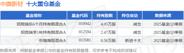 重仓中旗新材的公募基金请见下表: